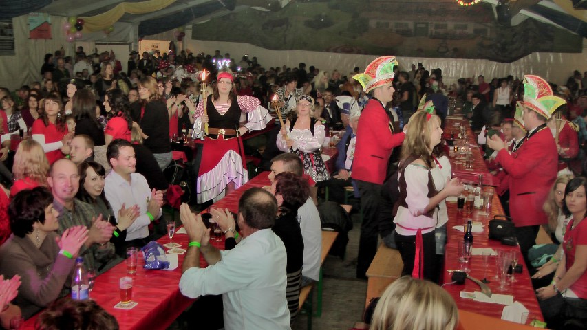 Nach dem Einmarsch der Blauen Garde, der Roten Garde und der Feuerfunken, nahm auch der Elferrat die Plätze ein. |